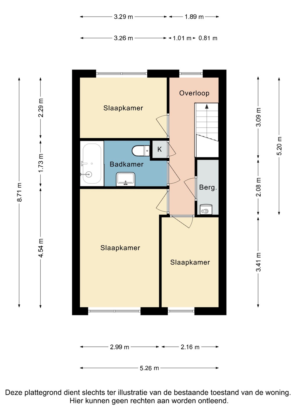 Overloop met toegang naar 3 slaapkamers voorzien van laminaatvloer. Bergkast met cv eigendom installatie (Intergas, 2012).