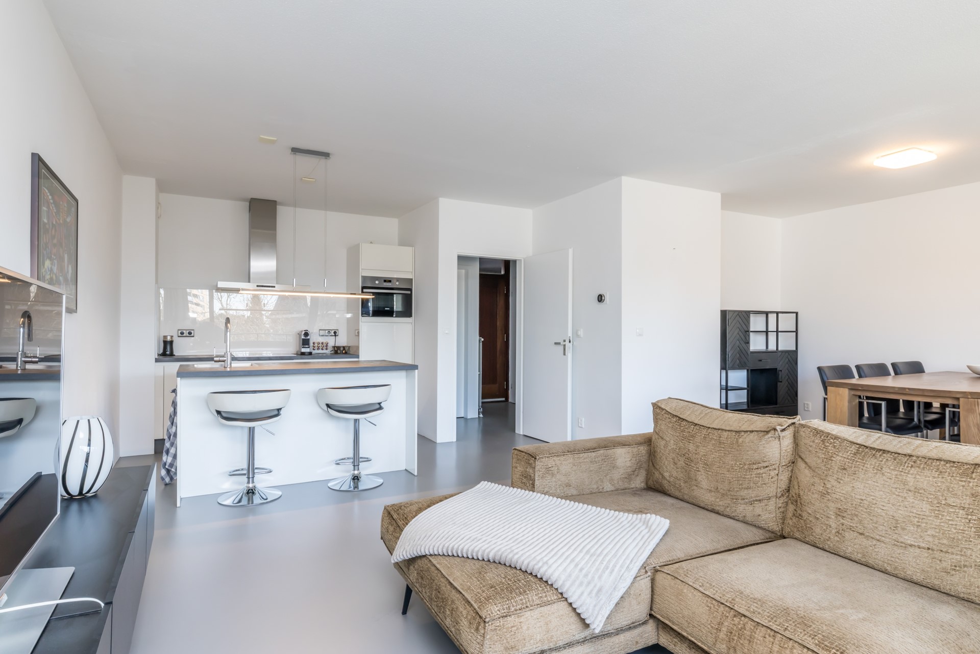 Entree via overloop met toegang tot het appartement.