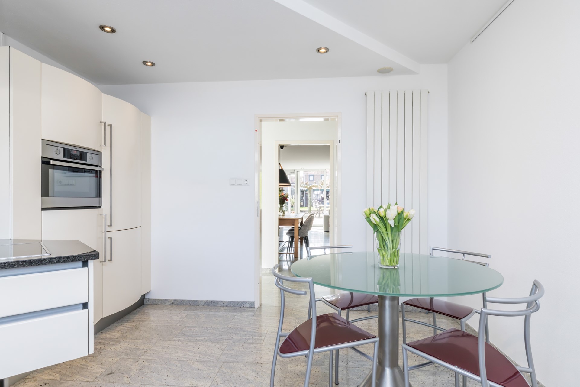 De gesloten leefkeuken heeft een speelse indeling, veel lichtinval en is ruim van opzet. De keuken is compleet uitgerust met een koelkast, vriezer, inductiekookplaat, kokendwaterkraan, combi-oven/magnetron en vaatwasser. Tevens is er een close-in boiler (10 liter) aanwezig ter voorkoming van warmteverlies van het tapwater.