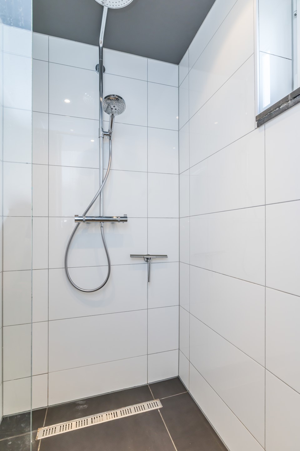 De woonkamer beschikt over grote raampartijen aan zowel de voor- als achterzijde, wat zorgt voor een prachtige natuurlijke lichtinval. Dankzij de comfortabele vloerverwarming op de begane grond is het hier aangenaam wonen. Via de grote schuifpui staat u in direct contact met de tuin. De achtertuin is ook bereikbaar via een praktische zij-ingang. Achterin de tuin bevindt zich een ruim tuinhuis met elektra-aansluiting.