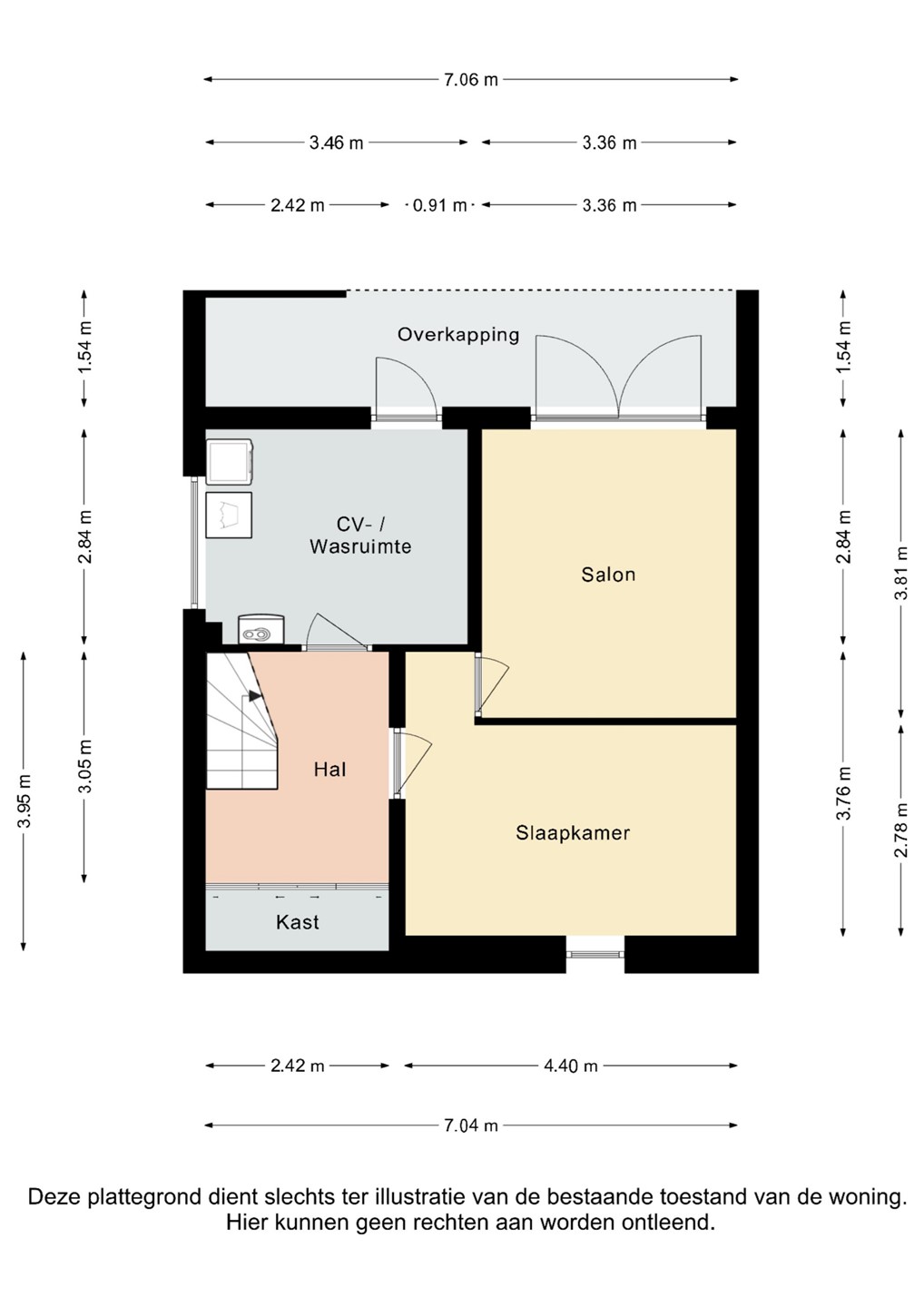 - Entree/hal, met een vaste trap naar 1e verdieping en met een vaste trap naar souterrain.