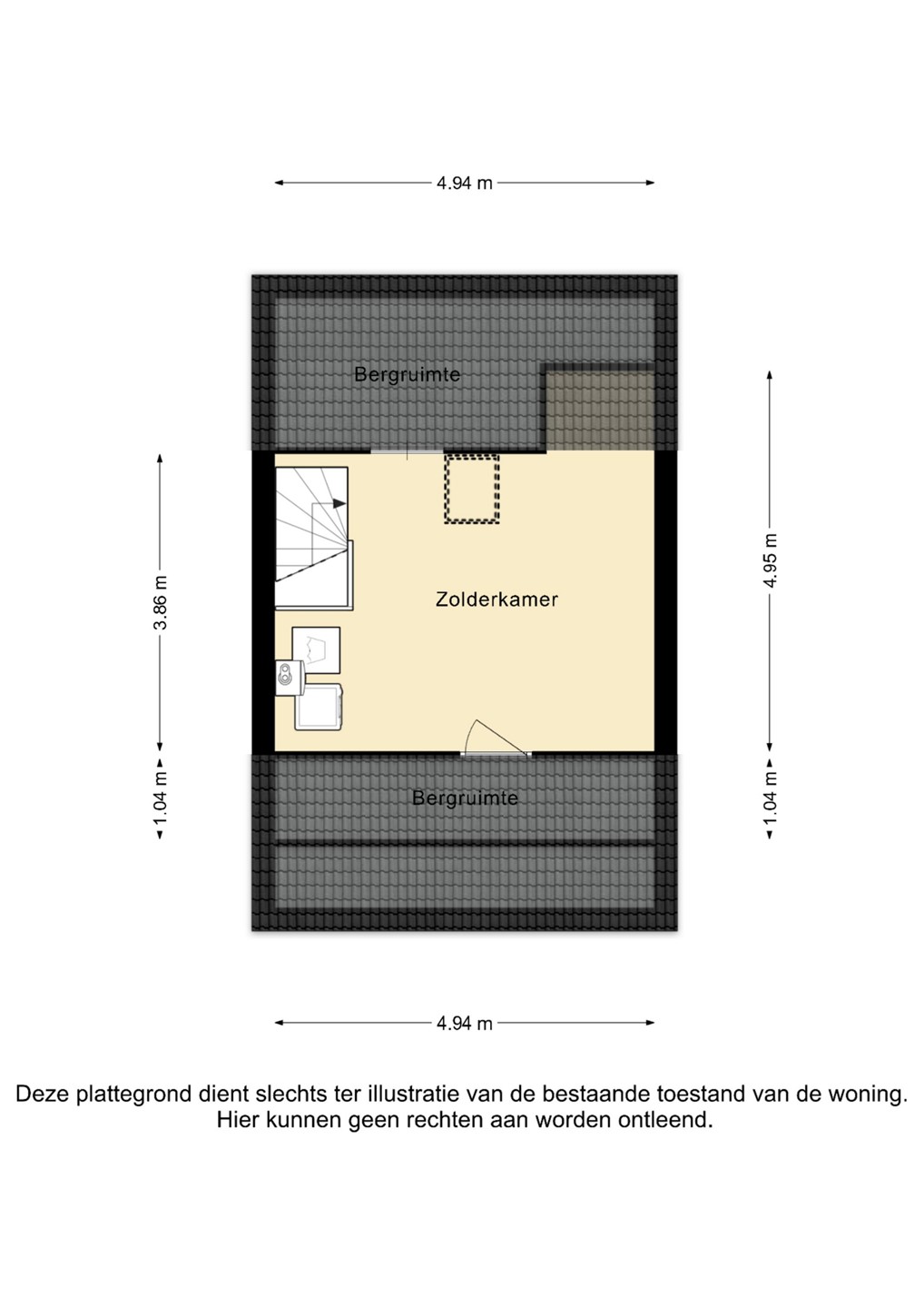 - Grote zolderkamer (nu in gebruik als vierde slaapkamer)